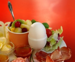 одно отварное куриное яйцо с небольшим кусочком сыра сорта «Фета».Вариант третий: