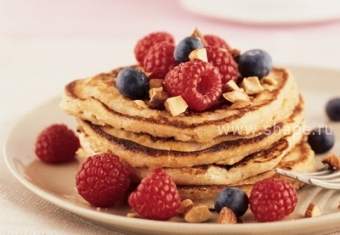 Отличное начало «ленивого» выходного утра! Украсьте оладьи свежими ягодами и йогуртом.